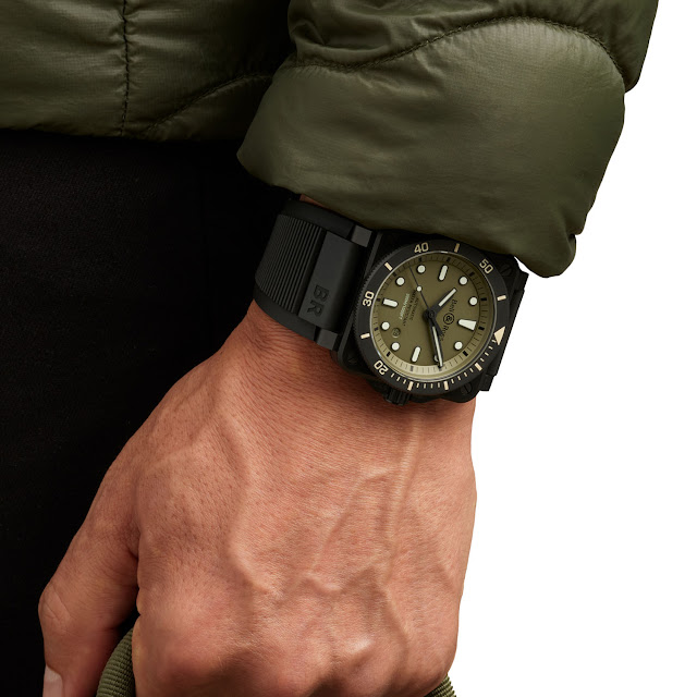 The Bell & Ross BR 03 Diver Military replica is delivered in a water-resistant Pelican box and will be limited to 999 pieces. It is now available from the brand's online shop and from retailers. It is priced at EUR 4,400.